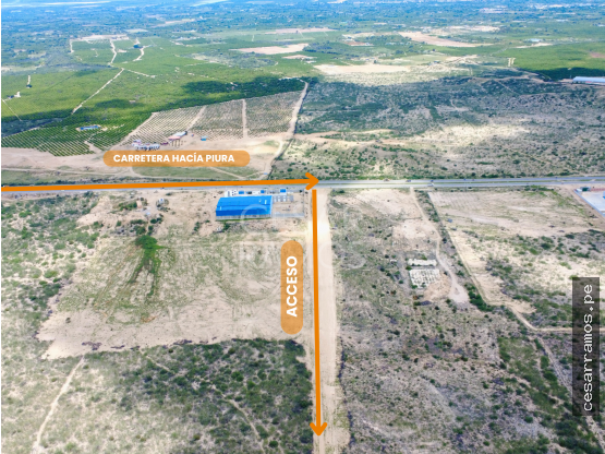 El terreno se encuentra cerca de la autopista Sullana Piura, a espaldas de la fábrica ESLA y de agropecuaria CHIMÚ.